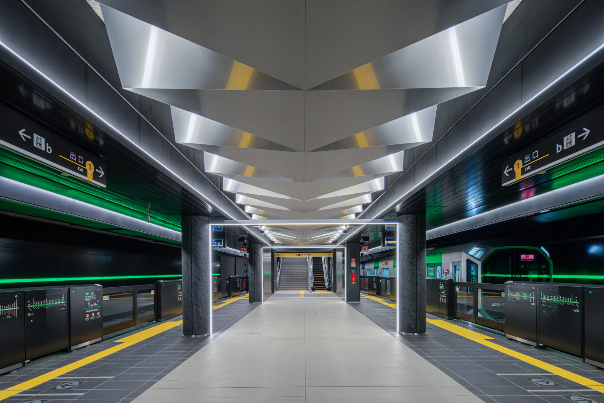 安井建築設計事務所の栗山純子さんは、夢洲駅の設計思想を紹介。日本の文化や技術を織り交ぜた空間構成で駅自体を“パビリオン”と位置づけた計画であり、鉄道の運行ダイヤ図と折り紙をモチーフにした天井デザインや時間帯に合わせ色温度を変化させる照明、サイネージの演出が一体となり、訪れる人に「劇場のような体験」を提供していること、さらに改札口付近には、将来のIRエリアへ接続する通路を備えていることなどを紹介されました。