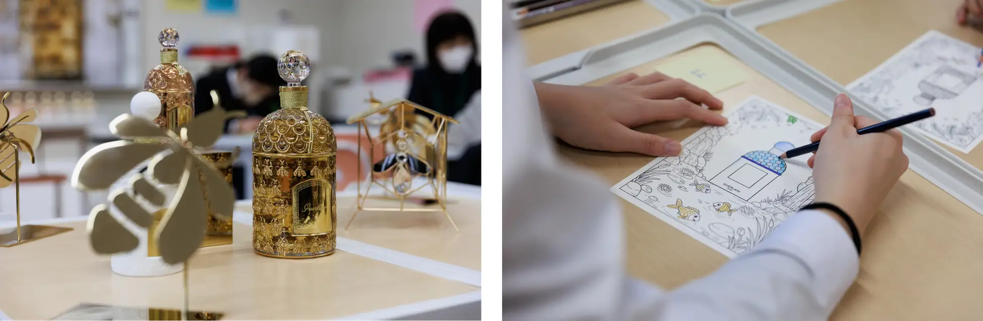 「ミツバチと共に世界を知ろう」をテーマに、約200年受け継がれた伝統と革新のサヴォアフェールを通じて、フレグランス創作の過程を探究・体験。ミツバチがコスメの原材料をはじめとした植物繁殖に不可欠な「ポリネーター(花粉媒介者)」であること、その保護の重要性を学習し、メゾンのサステナブル フレグランス〈アクア アレゴリア〉の香りとハチミツを楽しみました。