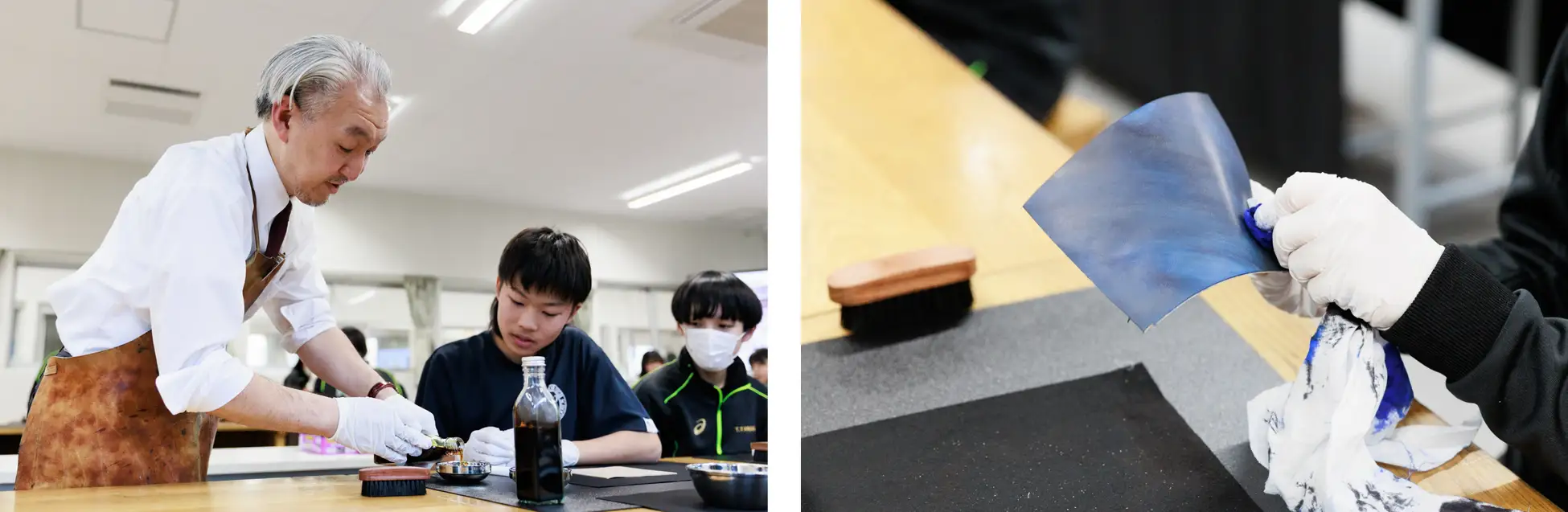 ワークショップに参加した生徒たちは、職人の緻密な手仕事や製品が生まれる過程に触れ、ものづくりの奥深さを実感。体験を通じて「新しい興味が芽生えた」「将来の可能性を考えるきっかけになった」と感じる生徒も多く、創造性と好奇心を刺激する貴重な時間となりました。