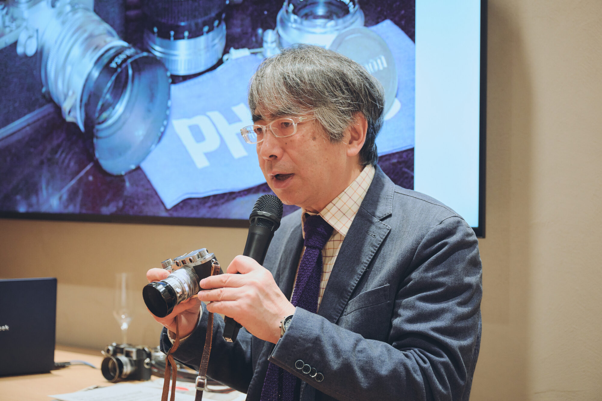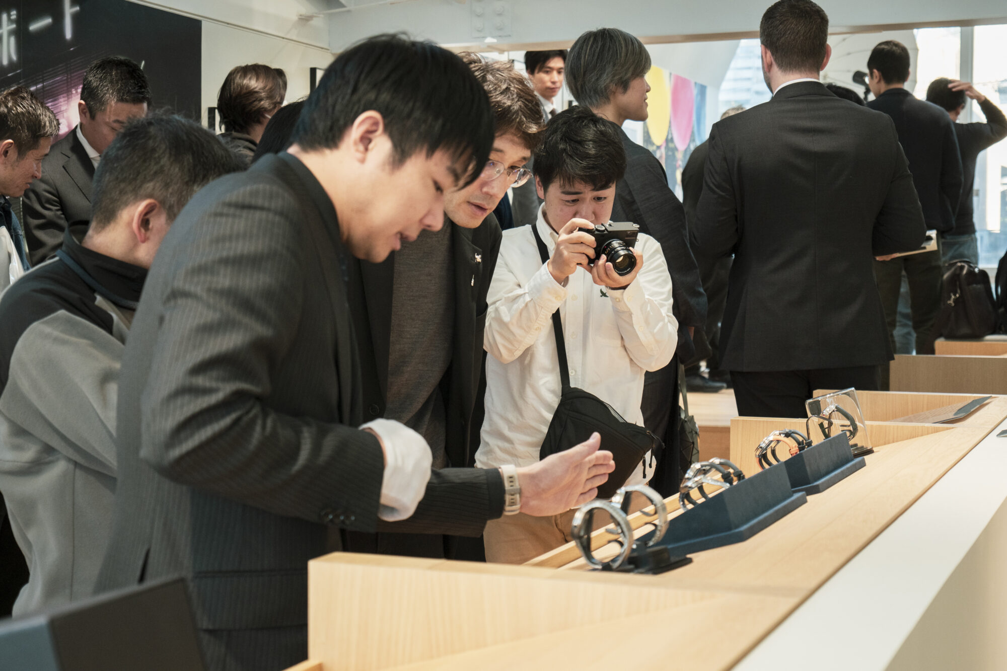 冒頭、Chrono24Japan日本アジア太平洋地域代表の真木可奈さんが司会を務め、Chrono24ドイツ本社の最高成長責任者ホセ・ガステルさんと、ブランドエンゲージメント責任者バラシュ・フェレンツィさんが挨拶。特別な機会を日本のファンと共有できる喜びを伝えた。トークセッションでは、時計ジャーナリストでライカ愛好家の名畑政治さんと、ライカカメラジャパンの米山和久さんが登壇。名畑さんの愛機のエピソードや新作「ライカZM 12」の機能美について、両者が熱いトークを繰り広げた。