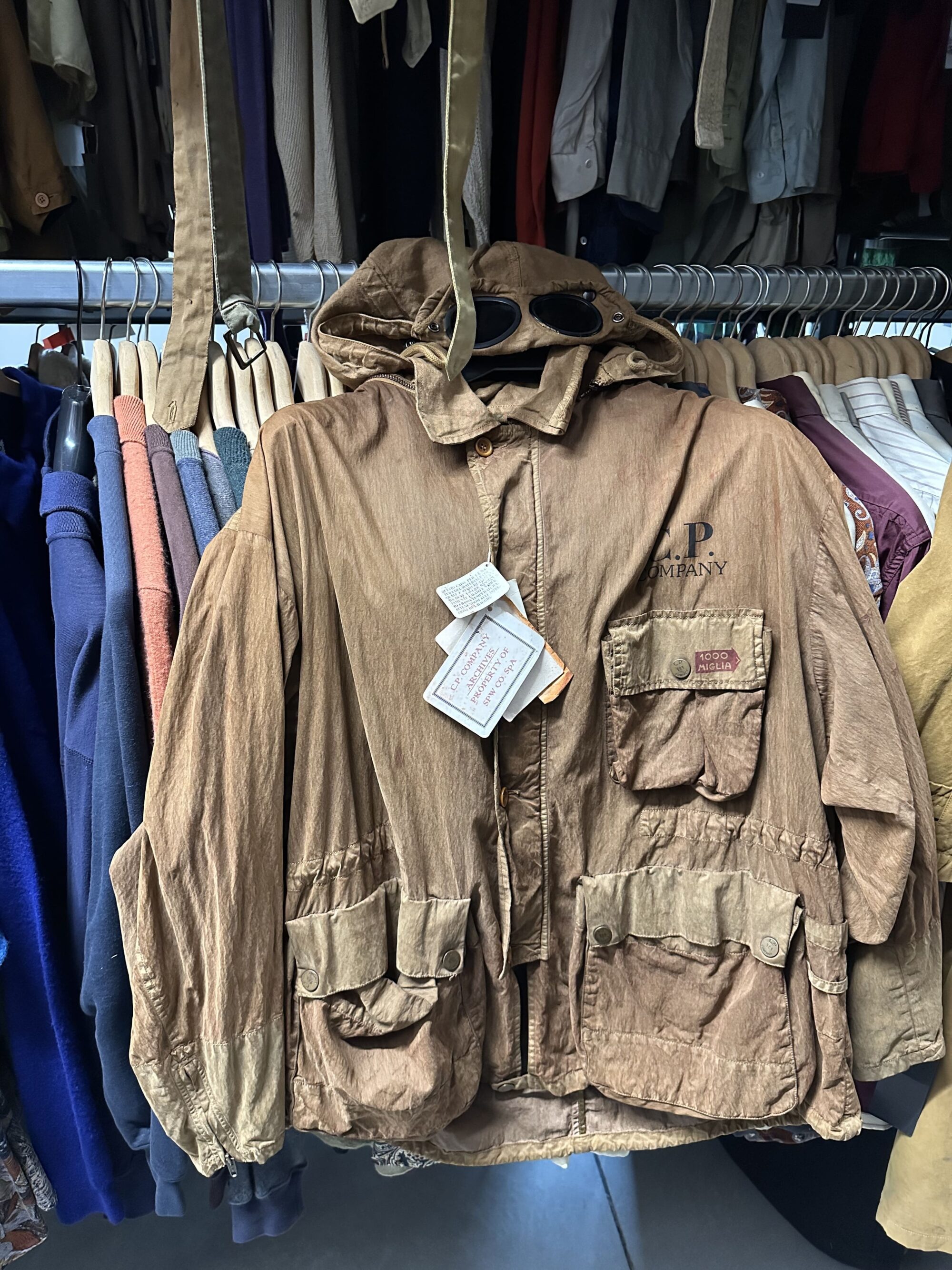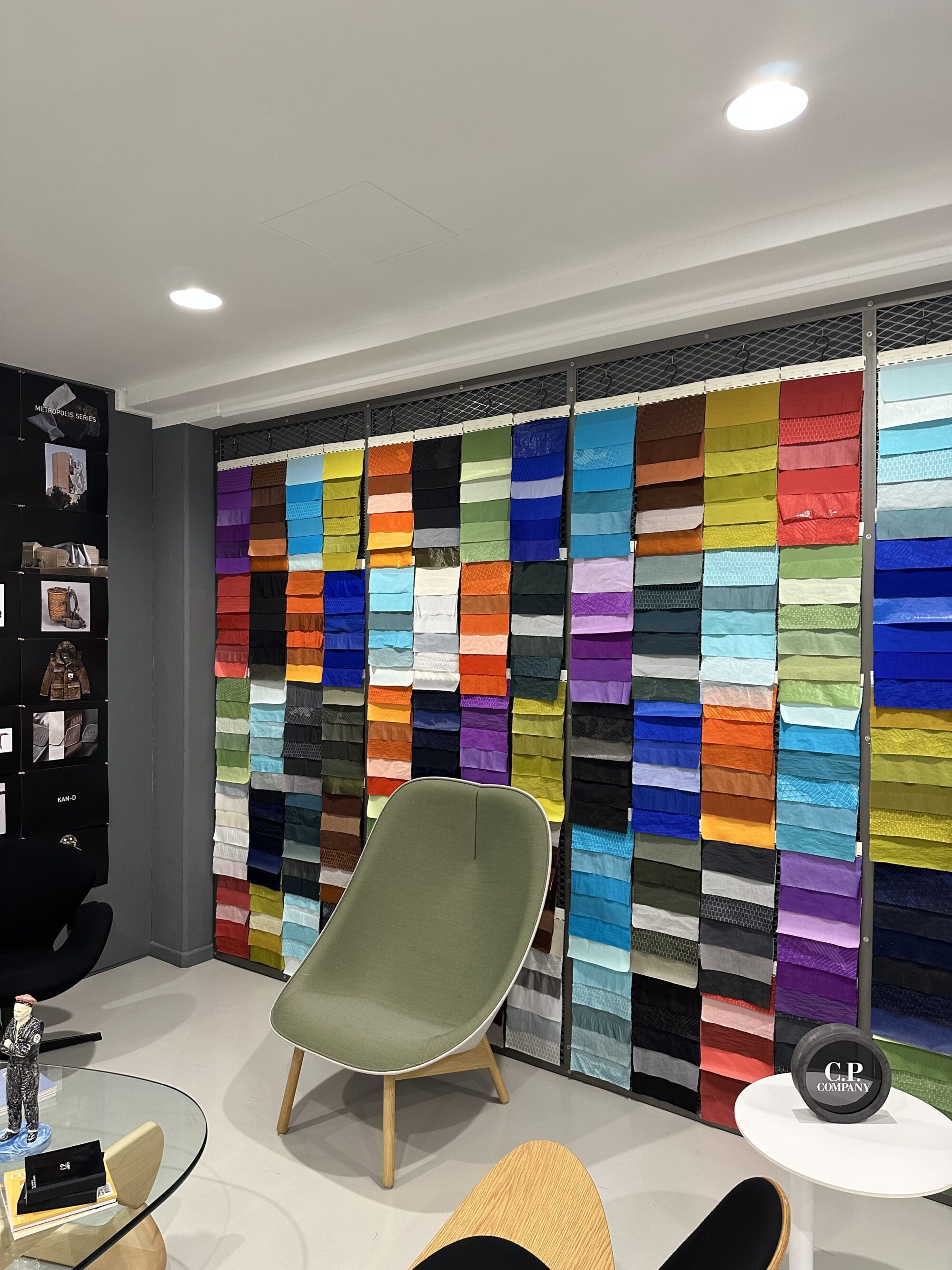 カッレの「C.P. Company」 R&Dセンターを訪問すると、まず案内されたのは膨大なアーカイブを収蔵した倉庫でした。ミリタリー、ワークウェア、テーラリングが融合した1970年代から現在に至るまでのコレクションが保存されており、単なるファッションブランドではなく、「技術と思想の研究機関」であることを強く実感しました。
