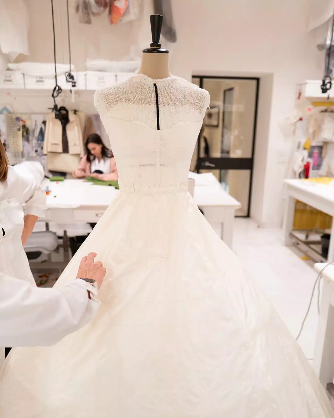 当時は既製服、すなわちプレタポルテの市場が拡大し、服は限られた顧客のための一点物から、より多くの人が手にできる商品へと転換していく。また、戦後の経済成長とともに消費社会は成熟し、女性の社会進出も徐々に進み始める。動きやすさや実用性は、新しい時代の価値として歓迎された。服は夢や格式を纏うものから、日常を生きるための道具へと重心を移し始めたのだ。「特別な一着」から「買える商品」へ。多くのメゾンにとって、マーケットの重力がアトリエから店頭へ移る流れは、抵抗するより協調する方が合理的に見えた。