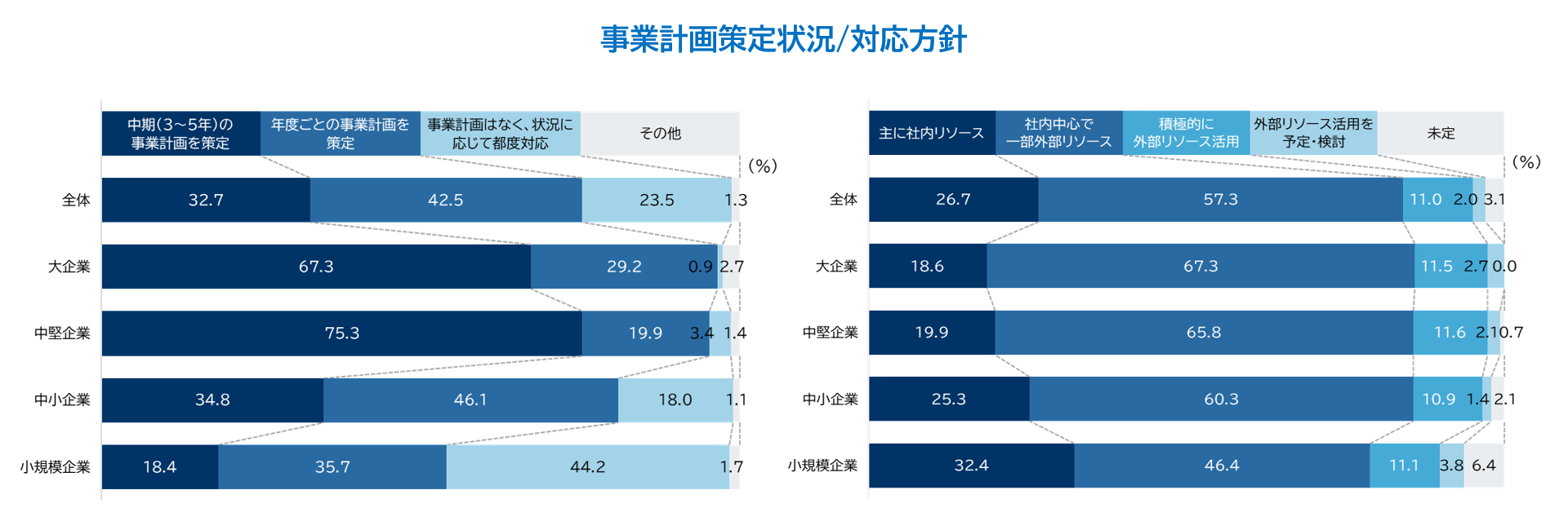 中堅・大企業は7割前後が「中期の事業計画」を策定